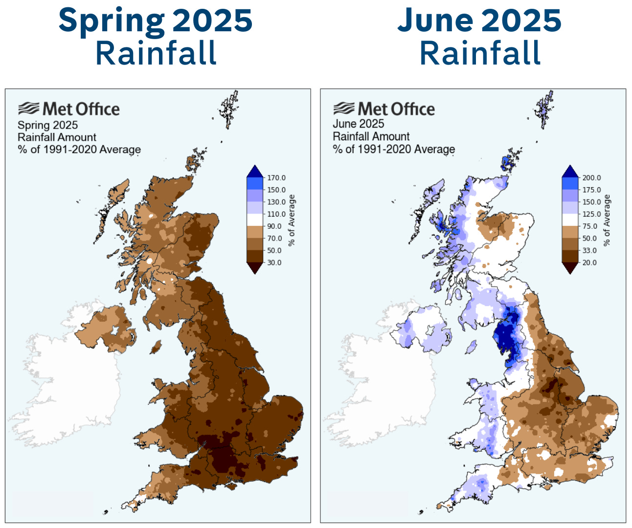 Western parts of the UK had a wetter than average June, but for much of central, southern and eastern England, the dry weather has persisted.